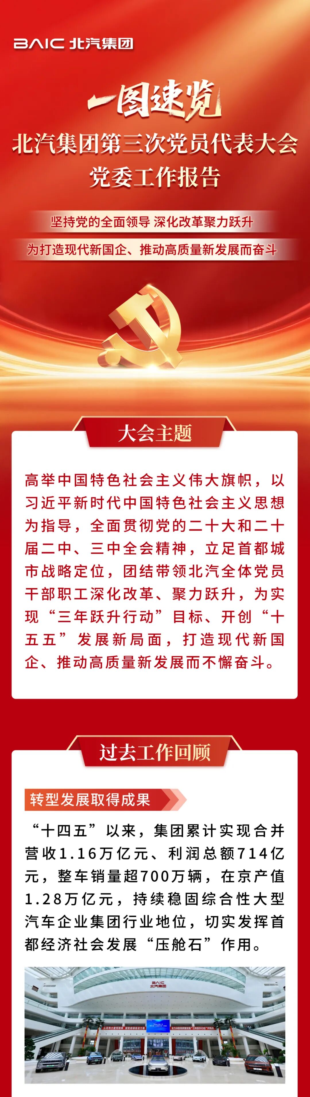 9月6日,中國共產(chǎn)黨北京汽車集團(tuán)有限公司第三次黨員代表大會勝利召開。北汽集團(tuán)黨委書記、董事長張建勇代表中共北汽集團(tuán)第二屆委員會向大會作題為《堅(jiān)持黨的全面領(lǐng)導(dǎo),深化改革聚力躍升,為打造現(xiàn)代新國企、推動(dòng)高質(zhì)量新發(fā)展而奮斗》的報(bào)告。