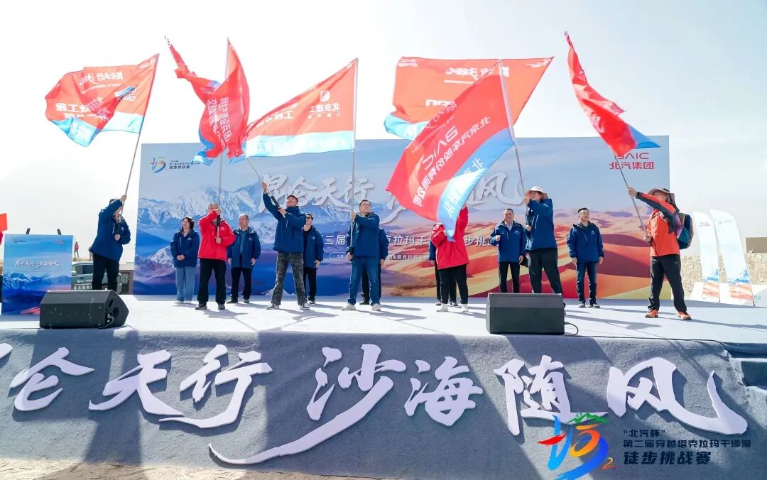 昆侖山下天朗氣清,旌旗獵獵。10月3日,由新疆生產(chǎn)建設(shè)兵團(tuán)第十四師昆玉市牽頭,聯(lián)合和田地區(qū)行政公署、北京市援疆和田指揮部等共同主辦的“北汽杯”第二屆穿越塔克拉瑪干沙漠徒步挑戰(zhàn)賽出征儀式在和田隆重舉行,400余名來自全國各地的參賽選手集結(jié)在此,向廣漠沙海發(fā)起挑戰(zhàn)。北汽集團(tuán)獨(dú)家冠名贊助本屆徒步挑戰(zhàn)賽,旗下北京越野、北汽福田、北汽極狐、享界汽車的全系自主產(chǎn)品融入豐富的賽道場景,50余輛核心產(chǎn)品全程服務(wù)保障賽事,助力文化潤疆、文旅興疆,為建設(shè)社會主義現(xiàn)代化新疆貢獻(xiàn)力量。
