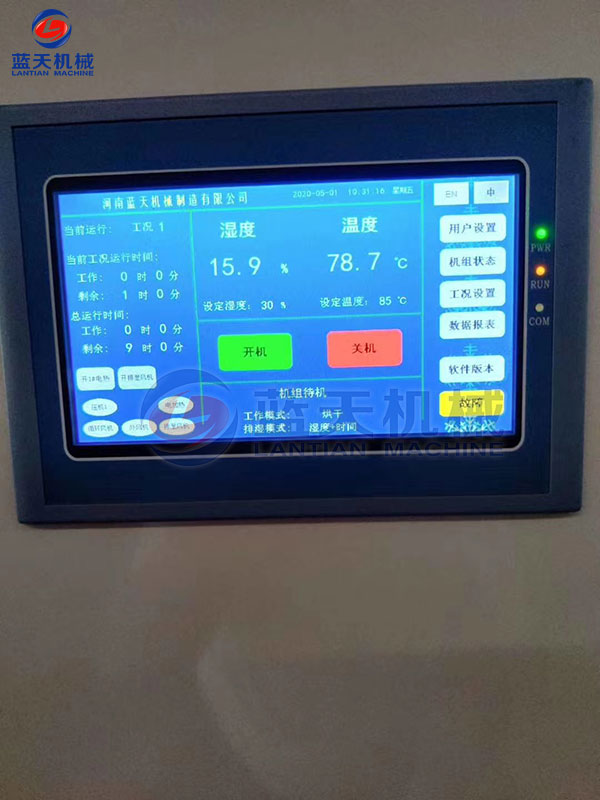 山藥烘干機(jī)開機(jī)運(yùn)行后,機(jī)內(nèi)的溫度濕度會(huì)直接顯示到PLC控制屏幕上,直接隨時(shí)觀察調(diào)整